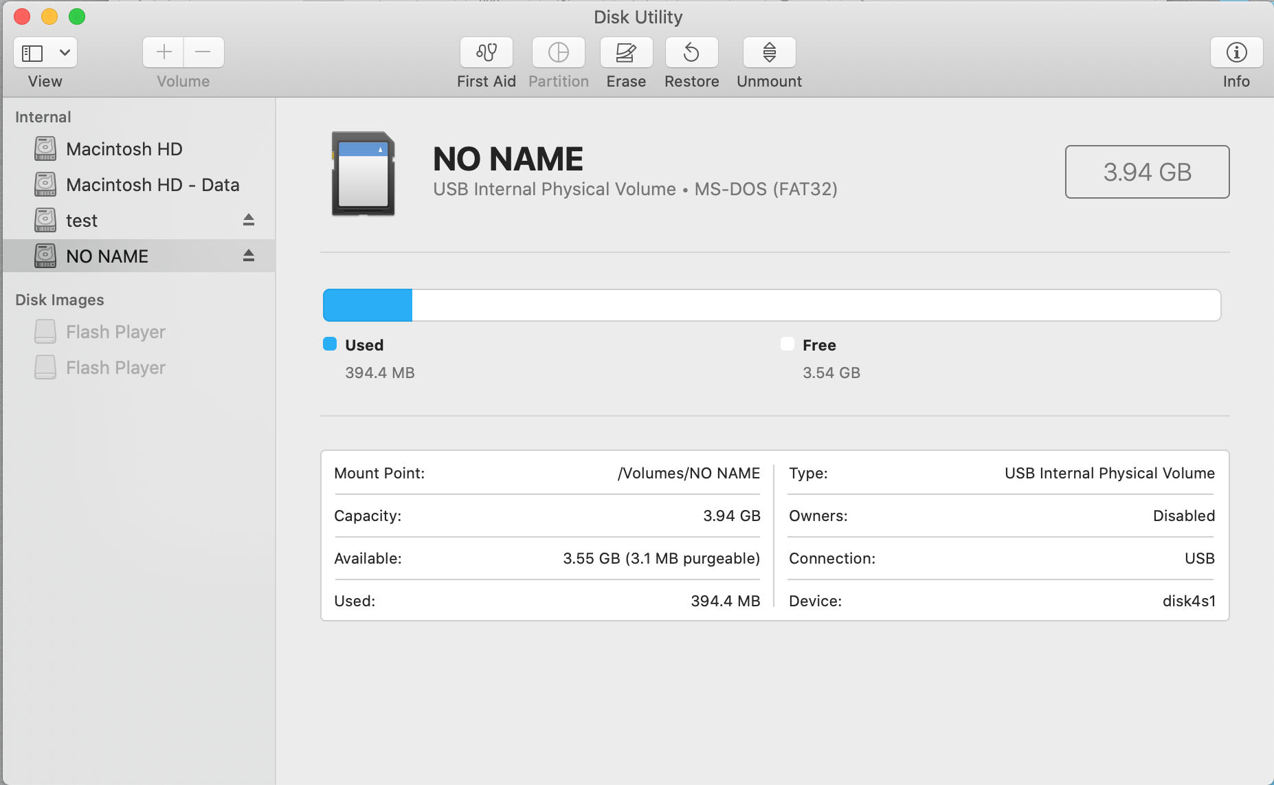 - Locate the correct disk in the menu on the left (“NO NAME” on the picture underneath)
